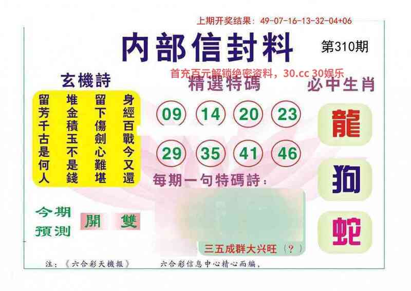 307期:【澳彩36码】中特=开狗20准